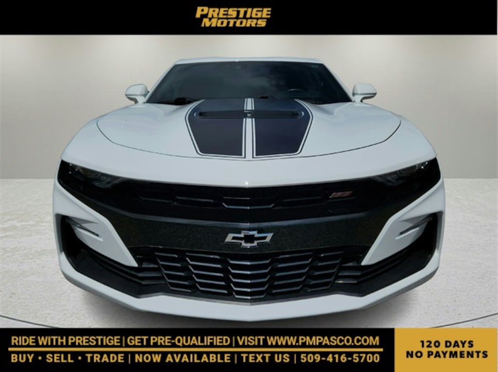 Clean Carfax, Camaro SS 2SS, 2D Coupe, 6.2L V8, 10-Speed Automatic, Exterior Parking Camera Rear, Wheels: 20" x 8.5" Fr & 20" x 9.5" Rr 5-Spoke Alum, 4-Wheel Disc Brakes, 6-Way Power Front Passenger Seat Adjuster, 8-Way Power Driver Seat Adjuster, 9 Speakers, ABS brakes, Air Conditioning, Alloy wheels, AM/FM radio: SiriusXM, Apple CarPlay/Android Auto, Auto-dimming door mirrors, Automatic temperature control, Bluetooth® For Phone, Bose Premium 9-Speaker Audio System Feature, Brake assist, Bumpers: body-color, Compass, Delay-off headlights, Driver door bin, Driver vanity mirror, Dual front impact airbags, Dual front side impact airbags, Electronic Stability Control, Four wheel independent suspension, Front anti-roll bar, Front Bucket Seats, Front Center Armrest, Front dual zone A/C, Front reading lights, Front Sport Bucket Seats, Fully automatic headlights, Heads-Up Display, Heated door mirrors, Heated Driver & Front Passenger Seats, Heated front seats, Heated steering wheel, Illuminated entry, Knee airbag, Leather Shift Knob, Leather-Trimmed Seat Trim, Low tire pressure warning, Memory seat, Occupant sensing airbag, Outside temperature display, Overhead airbag, Panic alarm, Passenger door bin, Passenger vanity mirror, Power door mirrors, Power driver seat, Power passenger seat, Power steering, Power windows, Premium audio system: Chevrolet Infotainment System, Radio data system, Radio: Chevrolet Infotainment 3 Plus System, Rear anti-roll bar, Rear window defroster, Remote keyless entry, Security system, SiriusXM Radio, Speed control, Speed-sensing steering, Spoiler, Steering wheel mounted audio controls, Tachometer, Telescoping steering wheel, Tilt steering wheel, Traction control, Trip computer, Variably intermittent wipers, Ventilated Driver & Front Passenger Seats, Ventilated front seats, Voltmeter, Camaro SS 2SS, 2D Coupe, 6.2L V8, 10-Speed Automatic, Exterior Parking Camera Rear, Wheels: 20" x 8.5" Fr & 20" x 9.5" Rr 5-Spoke Alum. Clean CARFAX.