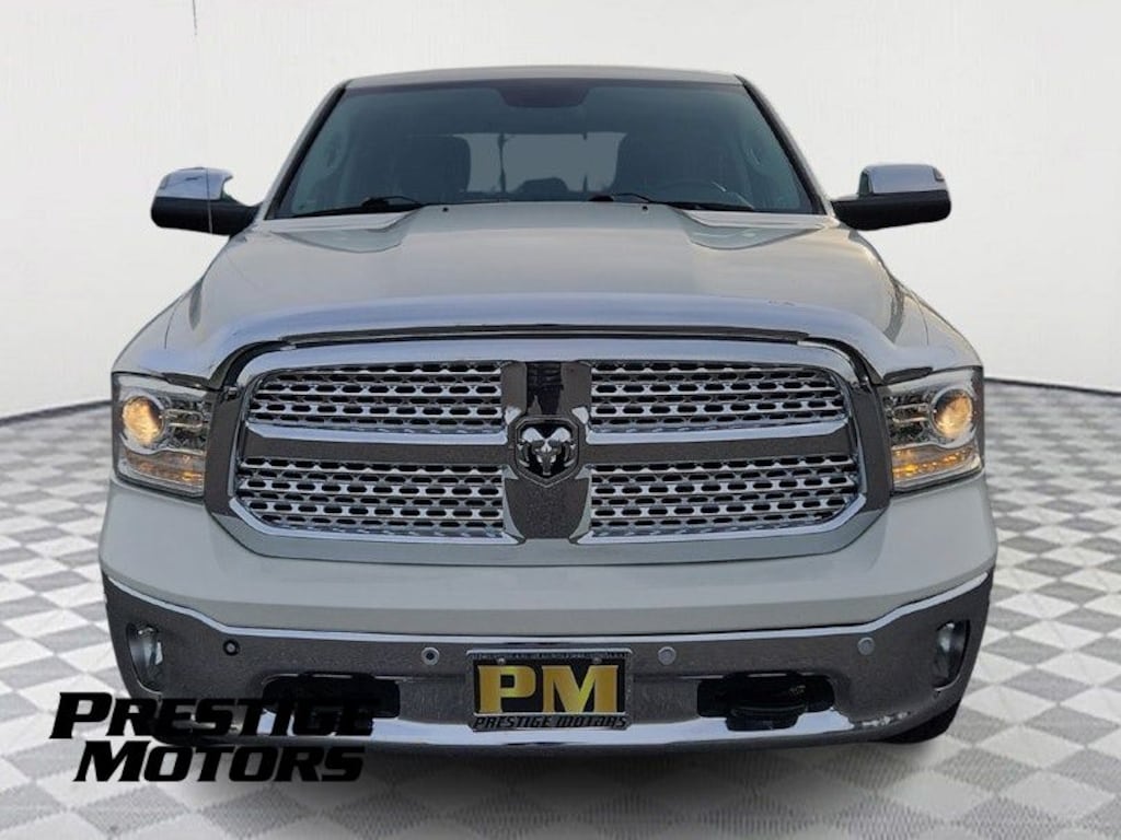 Local Trade-in, Must See, Clean Carfax, Fully Inspected, 3 Month 3,000 Mile Powertrain Warranty On Every Vehicle, 1500 Laramie, 4D Crew Cab, HEMI 5.7L V8 Multi Displacement VVT, 8-Speed Automatic, 4WD, Pearl White, Black Leather, Auto High Beam Headlamp Control, Brake assist, Convenience Group, Electronic Stability Control, GPS Navigation, Heated Front Seats, Heated front seats, Heated Steering Wheel, Keyless Enter-N-Go, ParkView Rear Back-Up Camera, Power Chrome Trailer Tow Mirrors, Power Sunroof, Protection Group, Quick Order Package 26H Laramie, Rain Sensitive Windshield Wipers, Remote Proximity Keyless Entry, Tow Hooks, Trailer Brake Control, Trailer Tow Mirrors, Trailer Tow Mirrors & Brake Group, Ventilated Front Seats, Ventilated front seats, 1 Yr. Trial (Registration Required), 10 Speakers, 115V Auxiliary Power Outlet, 20" x 9" Chrome Clad Aluminum Wheels, 32 Gallon Fuel Tank, 4-Corner Air Suspension, 4-Wheel Disc Brakes, 5-Year SiriusXM Traffic Service, 5-Year SiriusXM Travel Link Service, 8.4" Touchscreen Display, ABS brakes, Active Grille Shutters, Adjustable pedals, Air Conditioning, Alloy wheels, AM/FM radio, Anti-Spin Differential Rear Axle, Audio Jack Input for Mobile Devices, Audio memory, Auto-dimming door mirrors, Auto-dimming Rear-View mirror, Automatic temperature control, Body Color Fender Flares, Bright Rotary Shifter, Bumpers: chrome, Center Hub, Chrome Bodyside Molding, Compass, Delay-off headlights, Driver door bin, Driver vanity mirror, Dual front impact airbags, Dual front side impact airbags, Electronic Shift, Electronically Controlled Throttle, Emergency communication system: Uconnect Access, Engine Oil Heat Exchanger, Folding Flat Load Floor Storage, Front anti-roll bar, Front Center Armrest w/Storage, Front dual zone A/C, Front fog lights, Front reading lights, Front wheel independent suspension, Fully automatic headlights, Garage door transmitter, GPS Antenna Input, HD Radio, Heated door mirrors, Heated steering wheel, Heavy-Duty Engine Cooling, Hemi Badge, High Back Seats, Illuminated entry, Integrated Voice Command w/Bluetooth, Leather steering wheel, Leather Trim 40/20/40 Bench Seat, LED Bed Lighting, Low tire pressure warning, Media Hub (USB, AUX), Memory seat, Occupant sensing airbag, Outside temperature display, Overhead airbag, Overhead console, Panic alarm, ParkSense Front/Rear Park Assist System, Passenger door bin, Passenger vanity mirror, Pedal memory, Power 10-Way Memory Driver & 6-Way Passenger Seats, Power door mirrors, Power driver seat, Power passenger seat, Power steering, Power windows, Radio data system, Radio: Uconnect 3C Nav w/8.4" Display, Radio: Uconnect 3C w/8.4" Display, Rear 60/40 Split Folding Seat, Rear anti-roll bar, Rear seat center armrest, Rear step bumper, Remote keyless entry, Remote Start System, Remote USB Port, Security system, SIRIUSXM Satellite Radio, SIRIUSXM Traffic, SiriusXM Travel Link, Speed control, Split folding rear seat, Spray In Bedliner, Steering wheel mounted audio controls, Tachometer, Tilt steering wheel, Tip Start, Traction control, Trip computer, Turn signal indicator mirrors, Uconnect Access, Uconnect Access 1 Year Trial, Variably intermittent wipers, Voltmeter, Wheel to Wheel Side Steps, 1500 Laramie, 4D Crew Cab, HEMI 5.7L V8 Multi Displacement VVT, 8-Speed Automatic, 4WD, Pearl White, Black Leather, Auto High Beam Headlamp Control, Brake assist, Convenience Group, Electronic Stability Control, GPS Navigation, Heated Front Seats, Heated front seats, Heated Steering Wheel, Keyless Enter-N-Go, ParkView Rear Back-Up Camera, Power Chrome Trailer Tow Mirrors, Power Sunroof, Protection Group, Quick Order Package 26H Laramie, Rain Sensitive Windshield Wipers, Remote Proximity Keyless Entry, Tow Hooks, Trailer Brake Control, Trailer Tow Mirrors, Trailer Tow Mirrors & Brake Group, Ventilated Front Seats, Ventilated front seats.